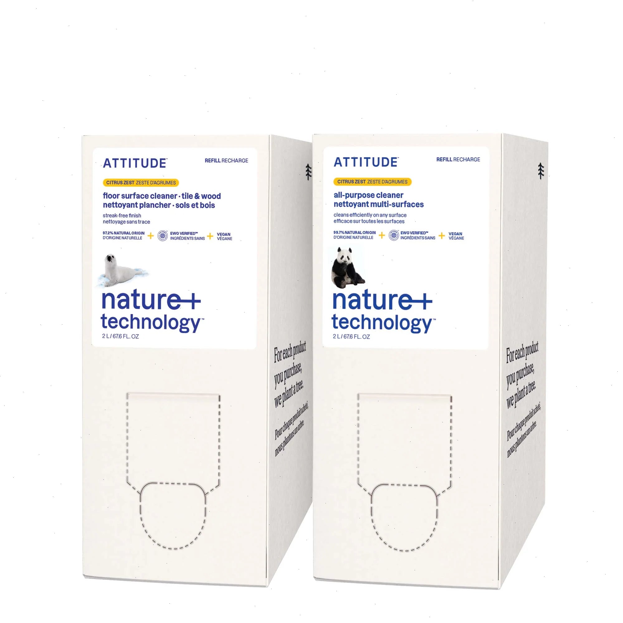 "Formulated with 94% of natural-origin ingredients, these cleaners products will become your must-have for a sparkling-clean home. The all purpose cleaner, that eliminates dirt and dust without leaving any streaks, can be used on most surfaces, indoors and out. The tile floor cleaner dissolves stubborn dirt and grime to reveal the natural beauty of your floors. The invigorating top notes of citrus blend harmoniously with the floral, herbaceous dimension of lavender. EWG-certified, vegan and cruelty-free formulas come in easy-to-carry 2-liter eco-refills for sparkling clean surfaces.