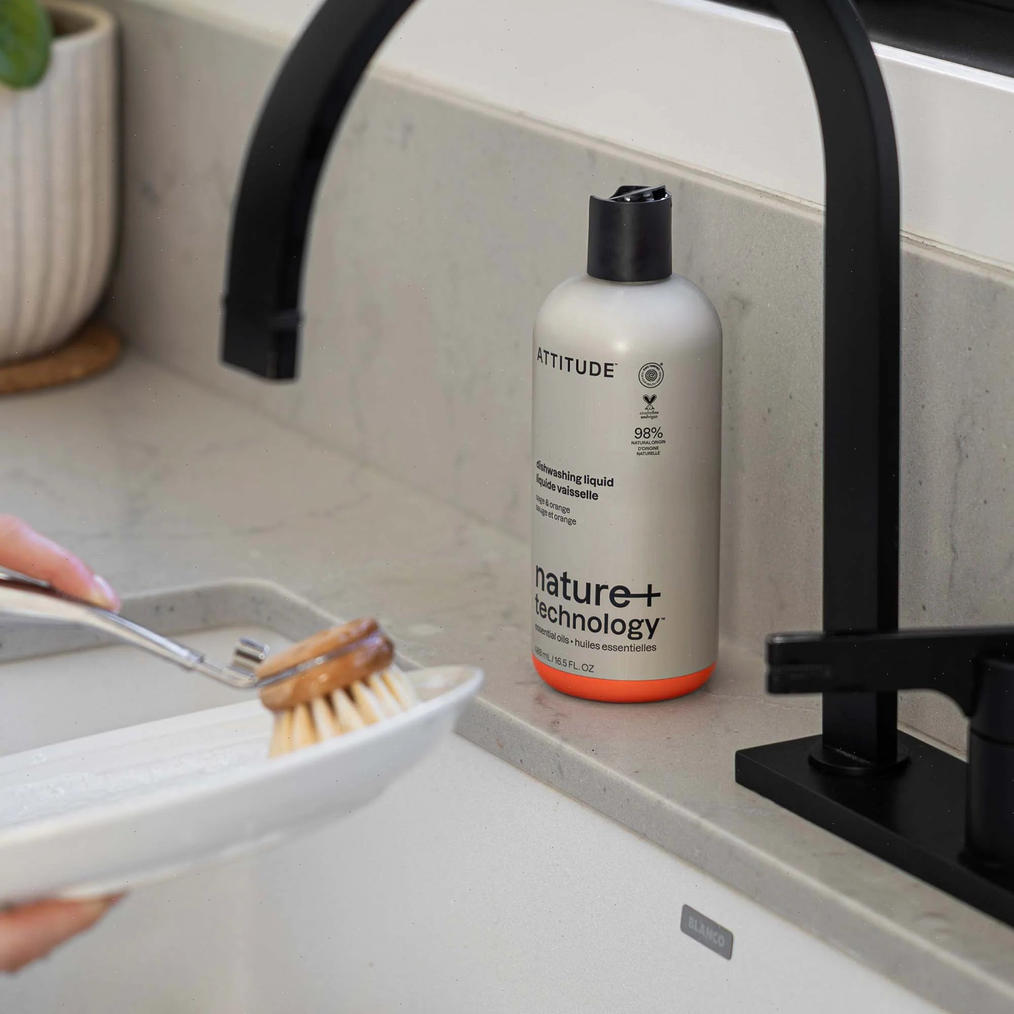 Say goodbye to grease and residues with our essential-oil infused dish soap. Made with 98% naturally derived ingredients, its EWG Verified® foaming formula combines plant-powered degreasing strength with gentleness for your hands, to deliver sparkling clean dishes.