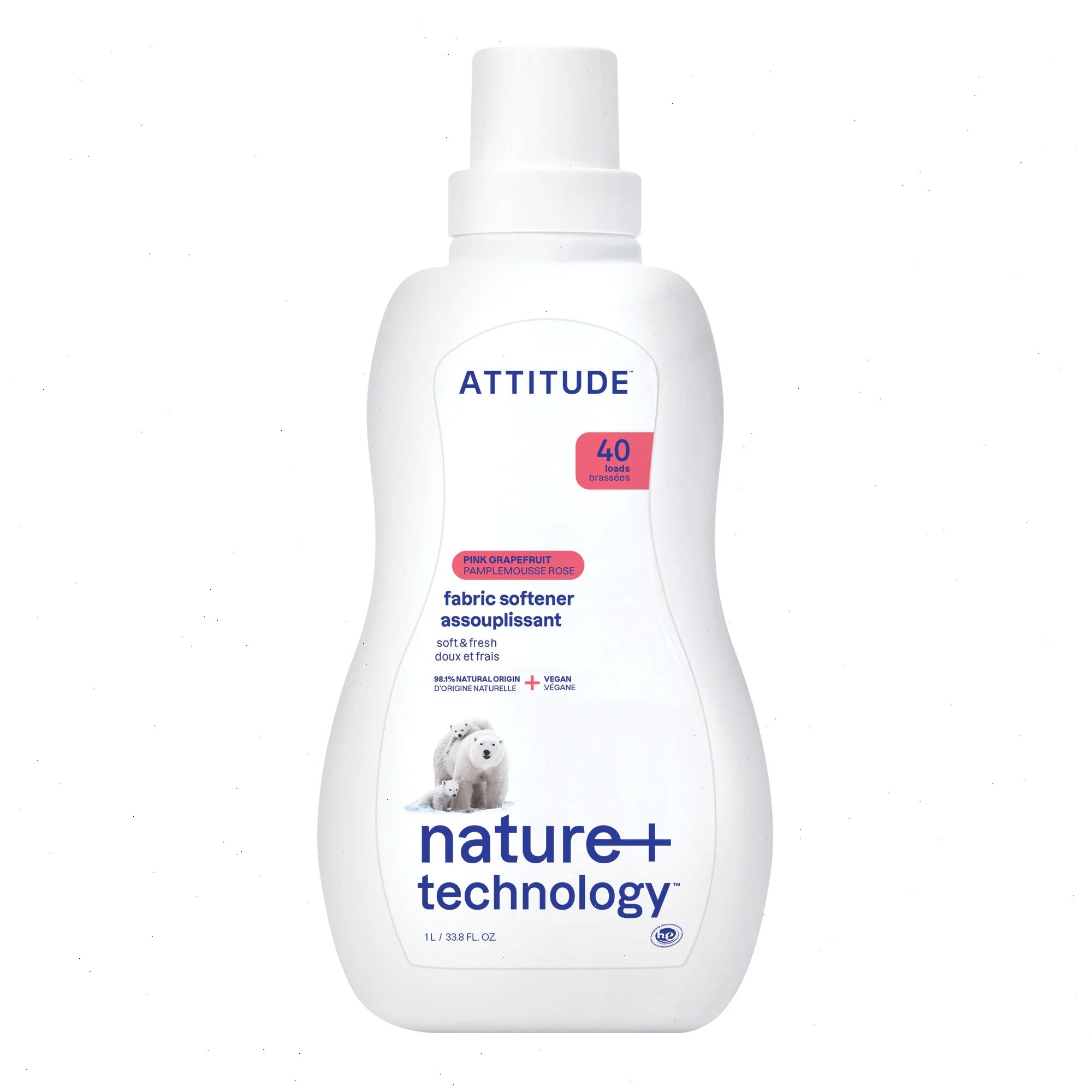 Formulated with 98% naturally derived ingredients, ATTITUDE™ fabric softener leaves your clothes feeling gentler, fresher and more comfortable. Its lively pink grapefruit notes blend harmoniously with the gentle floral tones of orange blossom. Its aromatic blend will give your laundry a sunburst of energy. The bottle is made from HDPE #2 plastic—the easiest plastic to recycle—and can be reused again and again thanks to our innovative eco-refills. A vegan and cruelty-free formula for hassle-free daily use.